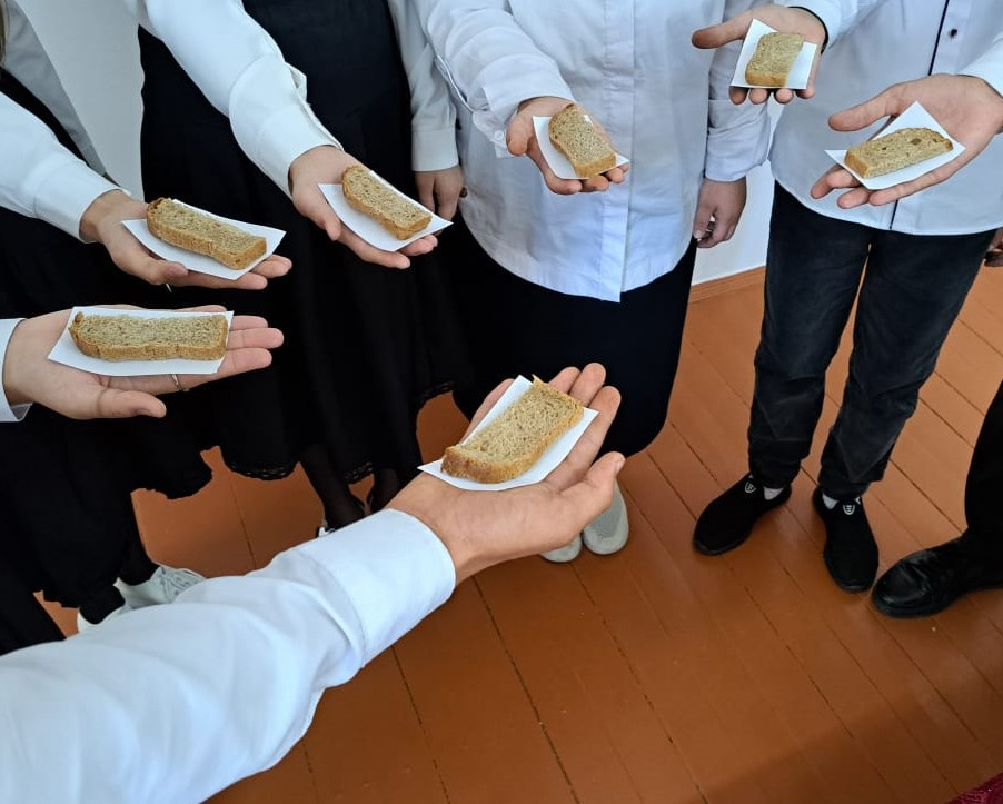 Ребята шагнули на страницу истории, где узнали, как трудно было находиться в городе в блокадное время. Учитель смогла воспроизвести некоторые события, которые тронули души подростков. Это и карточки на хлеб, и кусочки хлеба, которые выдавали ленинградцам по карточкам. Поразил учащихся дневник девочки Тани Савичевой, в котором описана короткая и трагическая судьба семьи. Закончилось мероприятие минутой молчания по погибшим во время блокады в Ленинграде.
