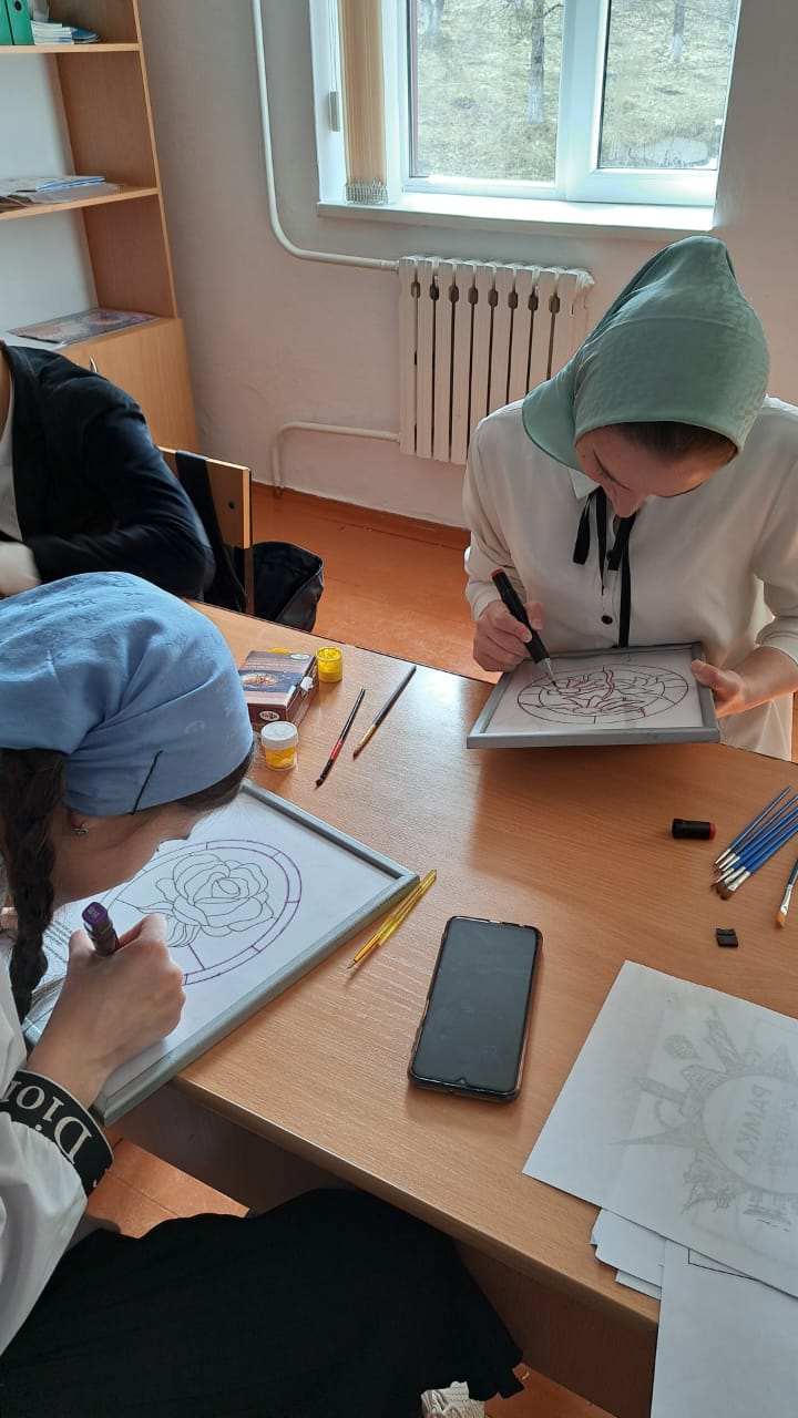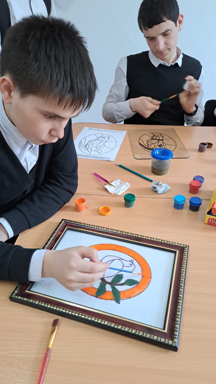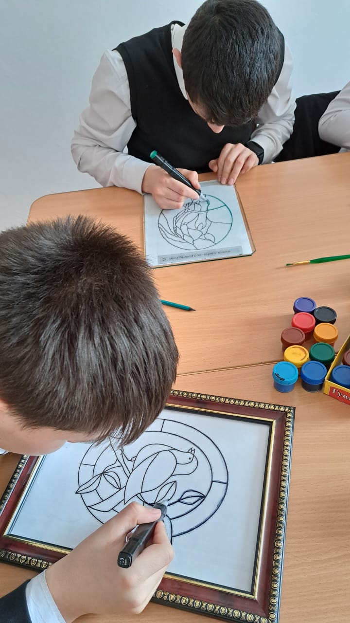 10.03.2023В СОШ с. Турты - Хутор на уроках изобразительного искусства и во внеурочное время обучающиеся изготавливают эскизы витражей.