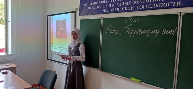 3.09.2025г. заместителем директора по ВР Сулеймановой М.Р. была проведена беседа на тему: «Терроризм-глобальная угроза человечеству» с обучающимся 9 класса.