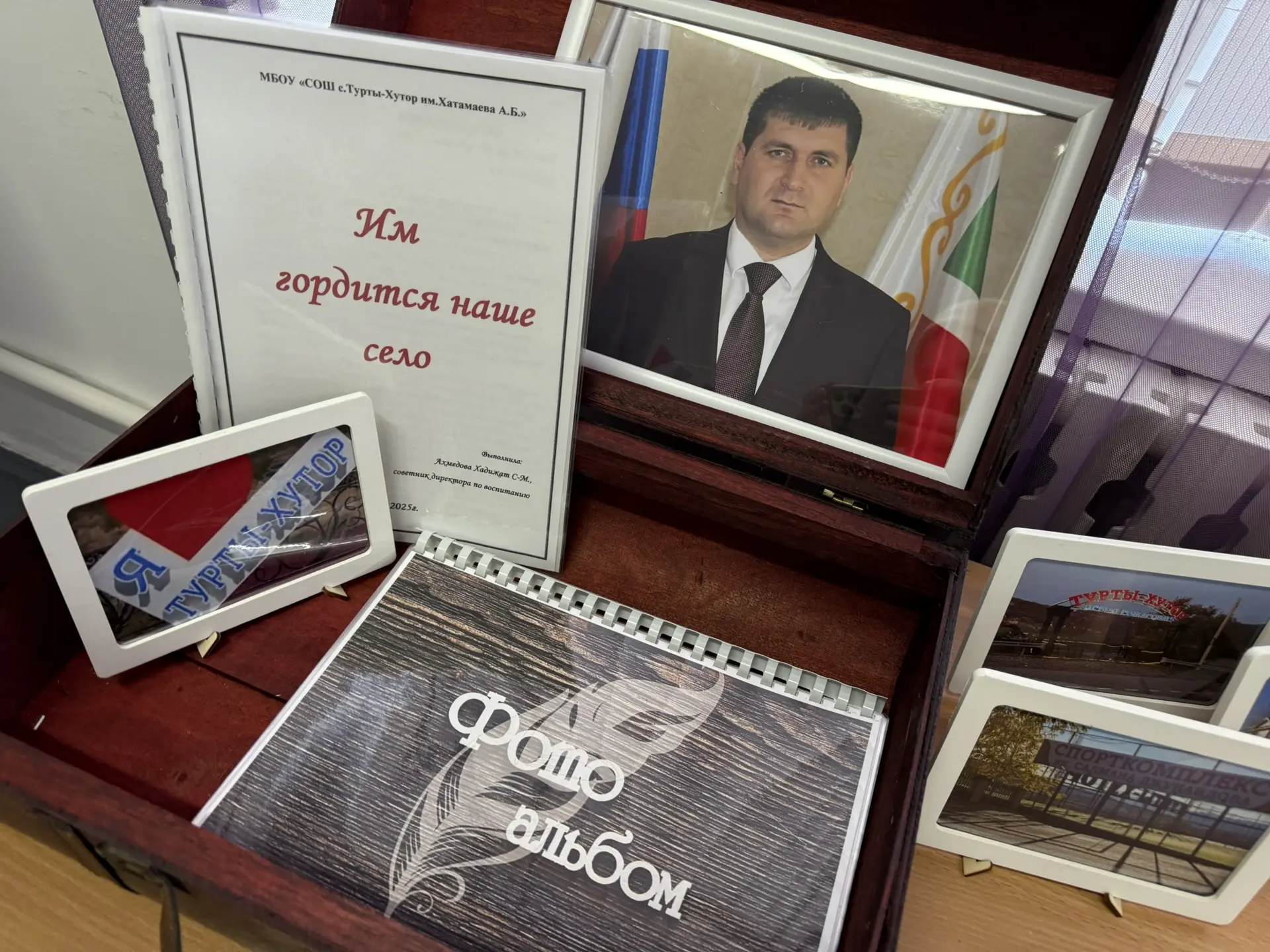 Он никогда не забывал свою малую Родину и многое сделал для села и односельчан. В экспозицию вошли фотографии , документы, любезно предоставленные естрой Асланбека Джунаидова.